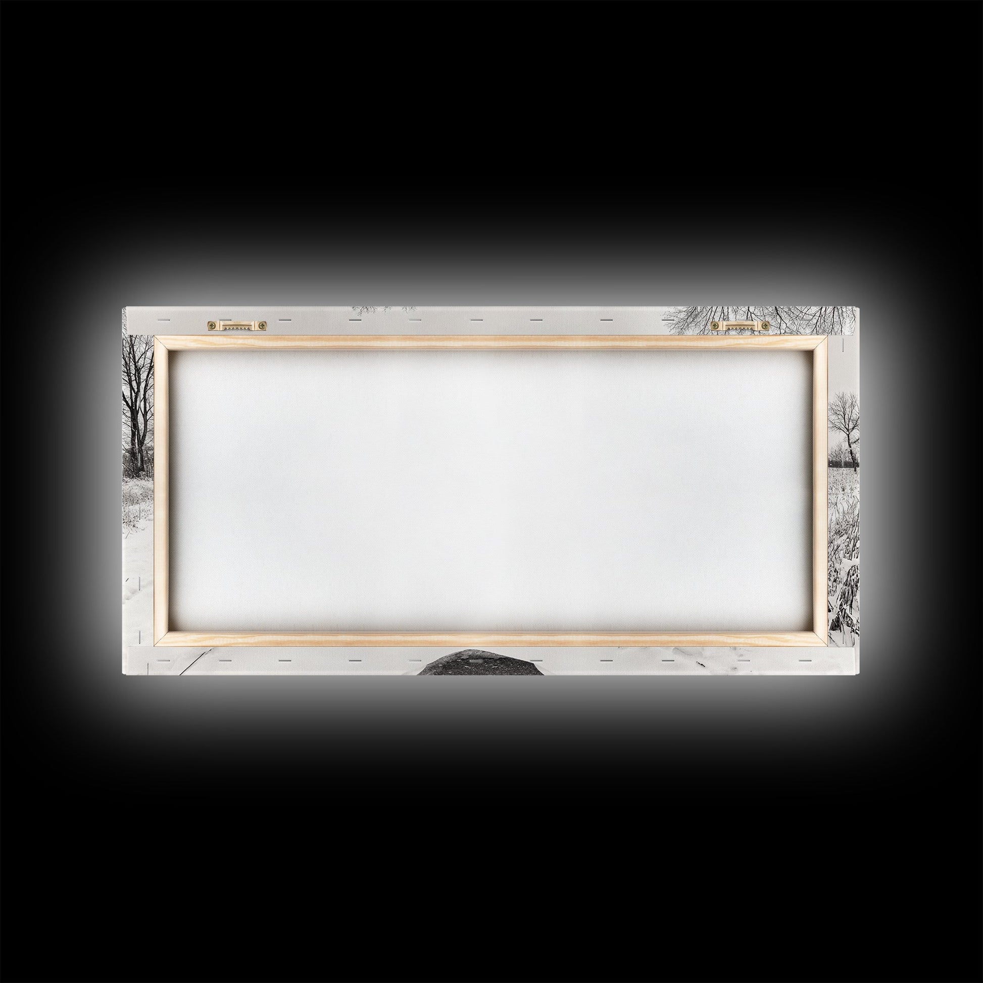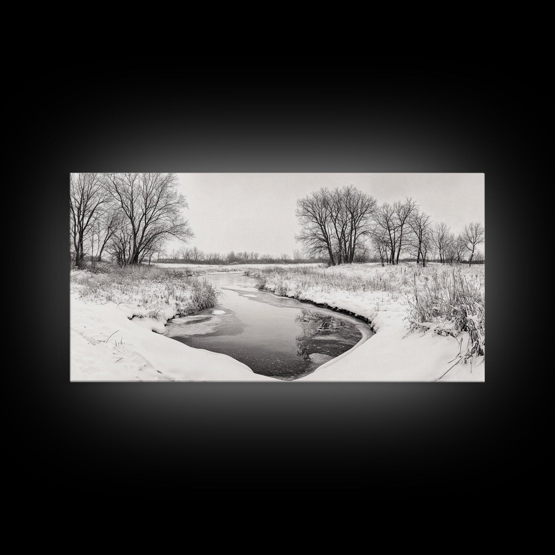 Frozen Stream & Bare Trees | Black & White Landscape Canvas Print